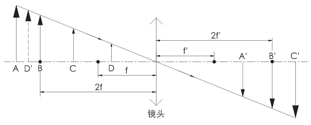 β = -1の場合は,BB′に示すように,対象物が異質であり,反転した等倍の実像になる。
