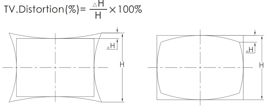 光学収差(ディストーション):異なる視野のレンズの倍率が同じではないため、対象物に相対する画像の類似性が失われ、このような欠陥の変形が光学収差と呼ばれます。 光学収差は映像の幾何学性に影響するだけで、映像の鮮明さには影響しません。 一般的な光学収差には、大きく分けて樽型収差とクッション型収差の2種類があります(図参照)。