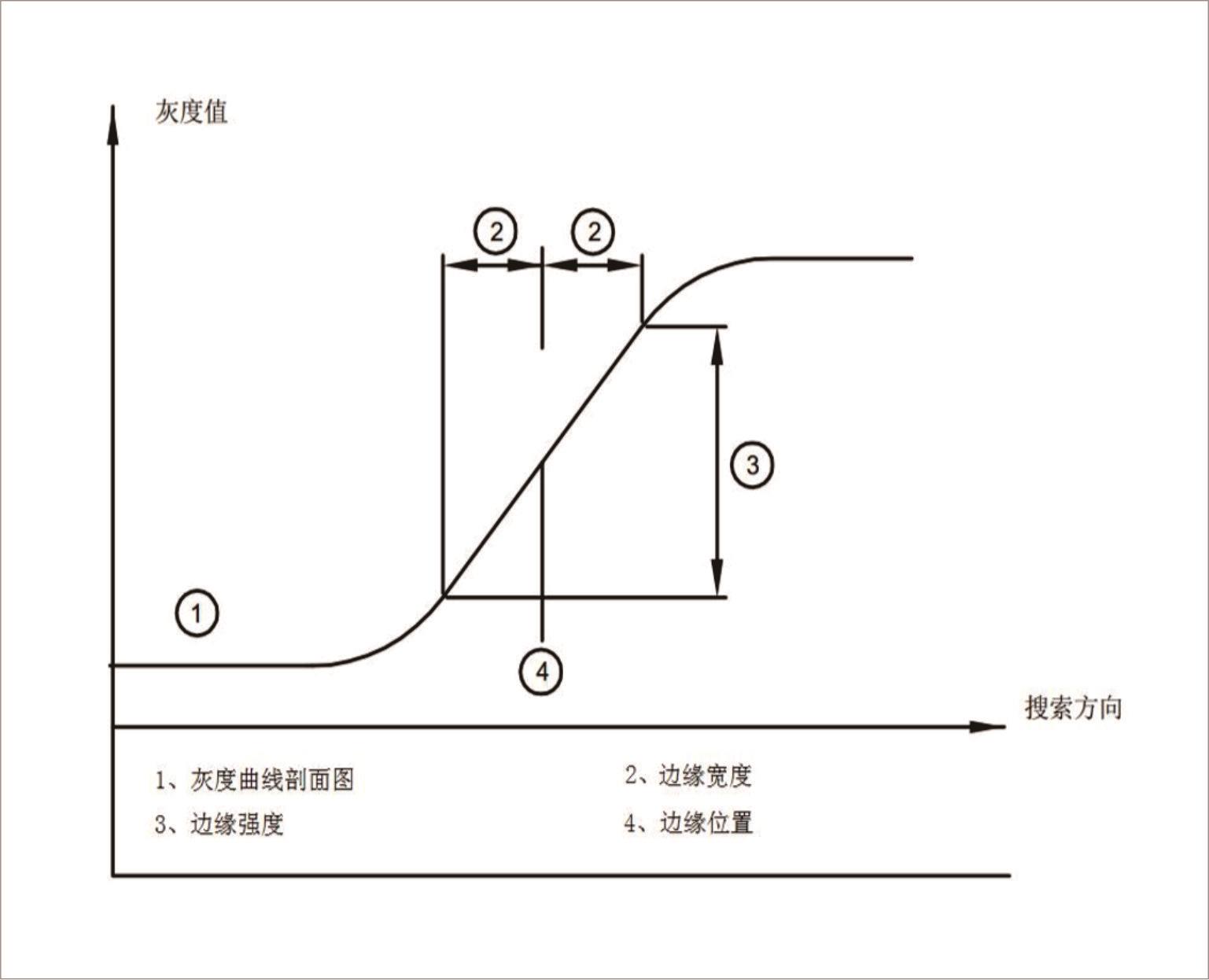 边缘强度:沿搜索线方向,边缘宽度对应的两像素点的灰度值之差。