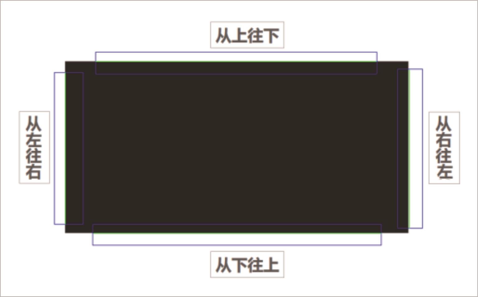 搜索方向:ROI区域内边缘点搜索线的搜索方向(极性为从白到黑),如图13。