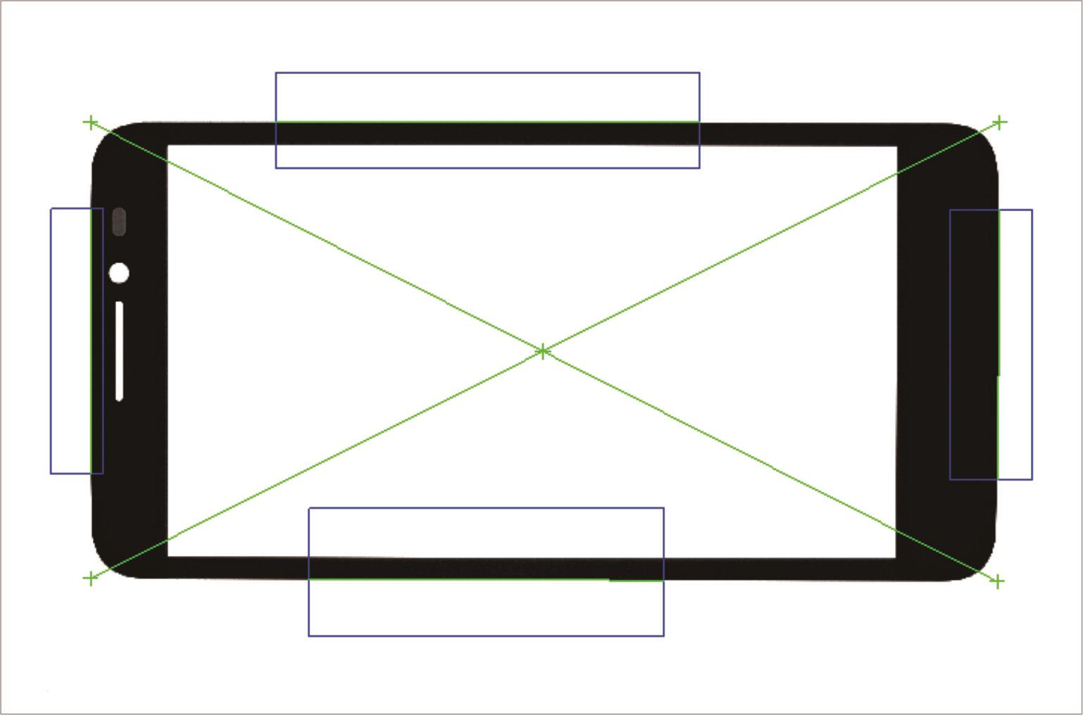 ● 用于产品精定位:通过找两直边,运用几何关系可以得到其直线交点,然后可通过4个交点分别拟合成两直线,再运用直线交点可得到产品的中心点。