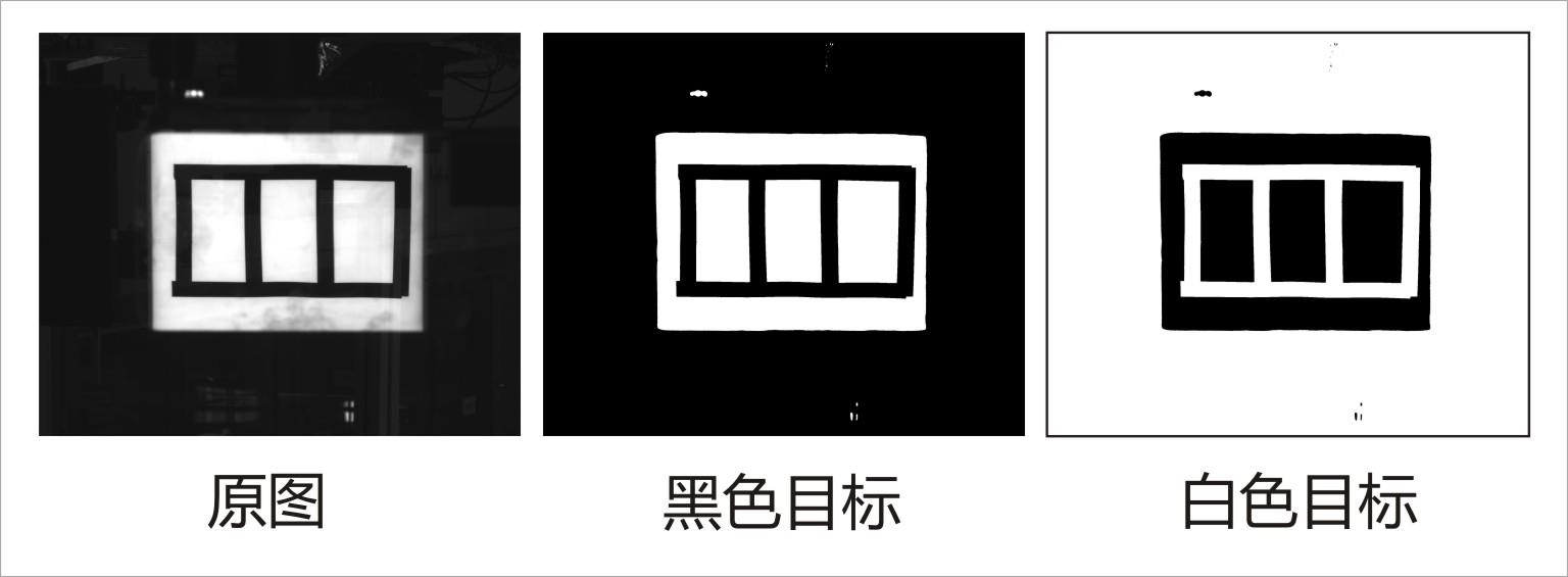 1)选择黑色目标时:目标区域的灰度值置为0,否则为255。