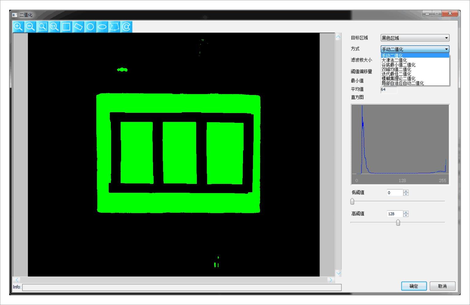 1)手动二值化:通过手动调节阈值实现图像二值化。