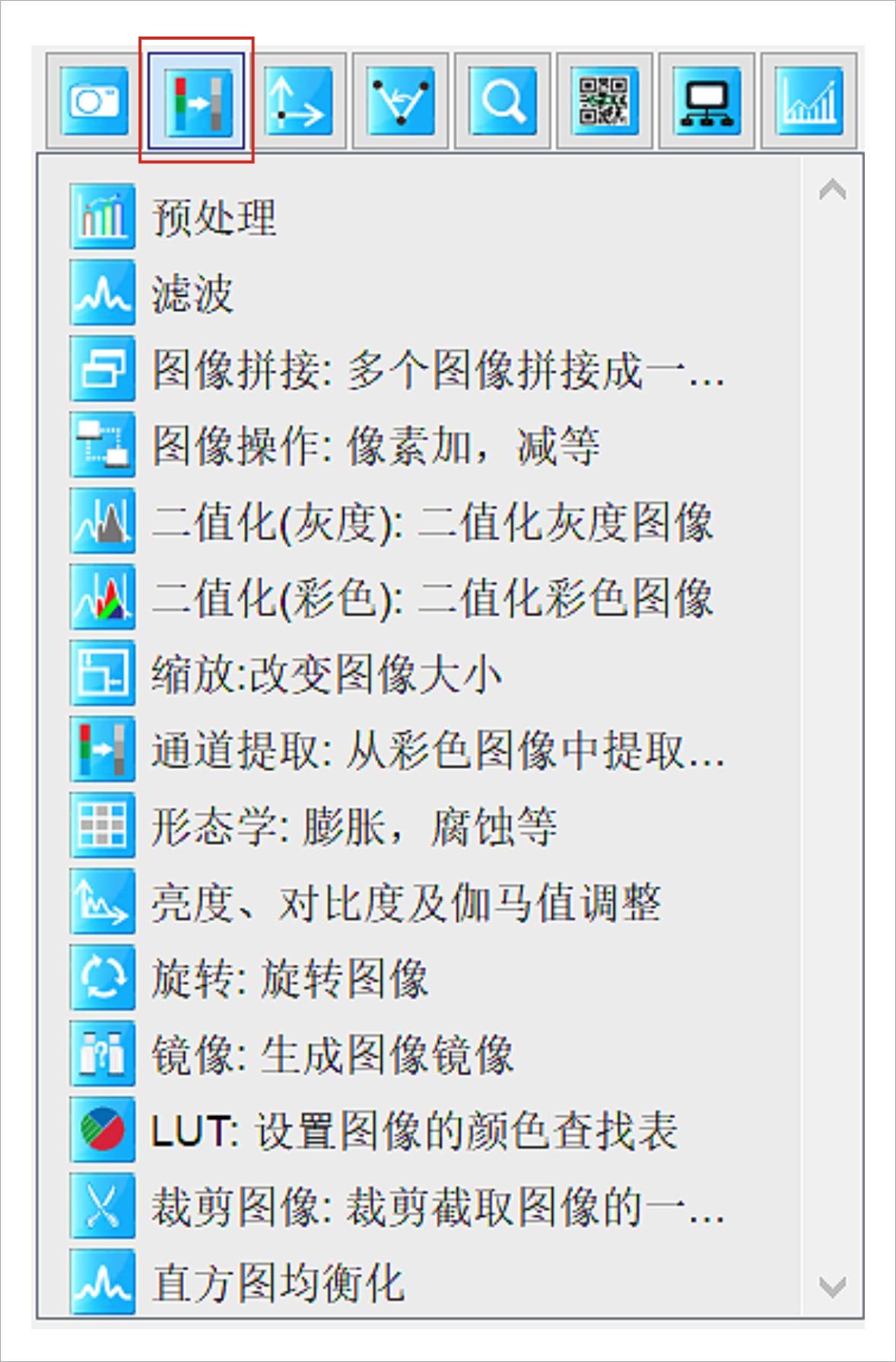 打开SciSmart,在主界面右下方工具箱栏点击图像增强的图标。在图像增强功能列表中可以看到,除滤波外,还有预处理、二值化、通道提取、形态学、直方图均衡化等功能,如图1。