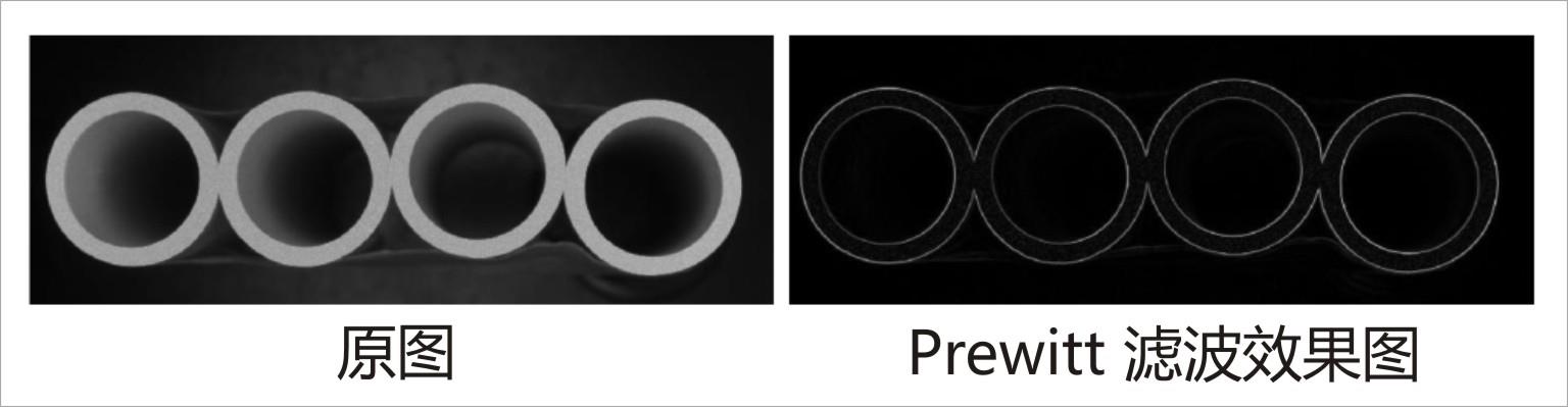Prewitt滤波是一种一阶微分算子,利用像素点上下、左右相邻点的灰度值差,在边缘处达到极值检测边缘,去掉部分伪边缘,对噪声具有平滑作用。其原理是在图像空间利用两个方向模板与图像进行邻域卷积来完成的,其效果如图8。