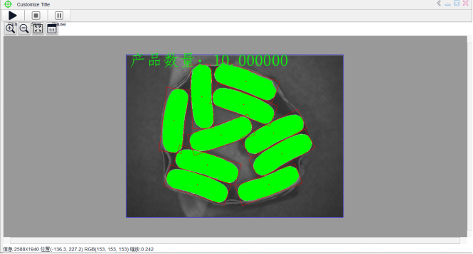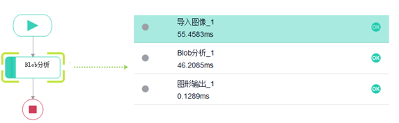 步骤二:使用“Blob分析”算子获取白色区域(即产品区域)的中心位置及个数。
