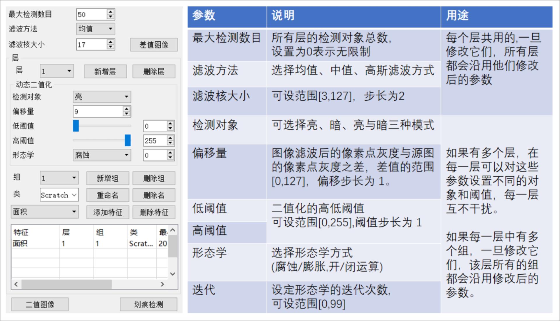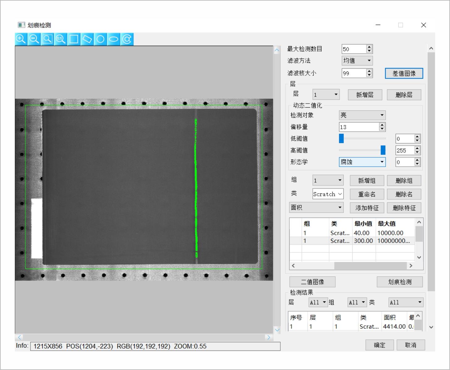 二、划痕检测的参数解析及效果图