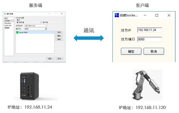 服务器与客户端PC进行连接通讯,需要服务器PC端的IP地址与客户端的PC的IP地址设置在同一网段及同一通讯端口号,例如图2: