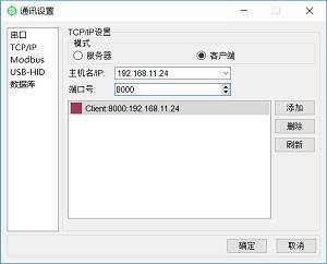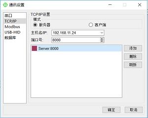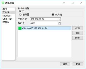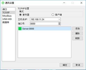 点击“菜单栏”—“设置”—“通讯设置”,打开通讯配置界面,点击“TCP/IP”选项,进入 TCP/IP 通讯配置界面。