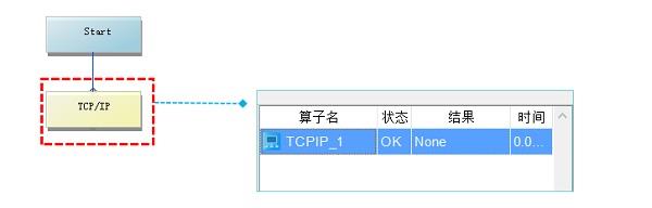 在流程图中的功能模块添加TCP/IP算子实现接收或发送数据。(注:单个TCP/IP算子只能作为接收或发送中的一种,如需要同时实现接收和实现则添加多TCP/IP算子。)