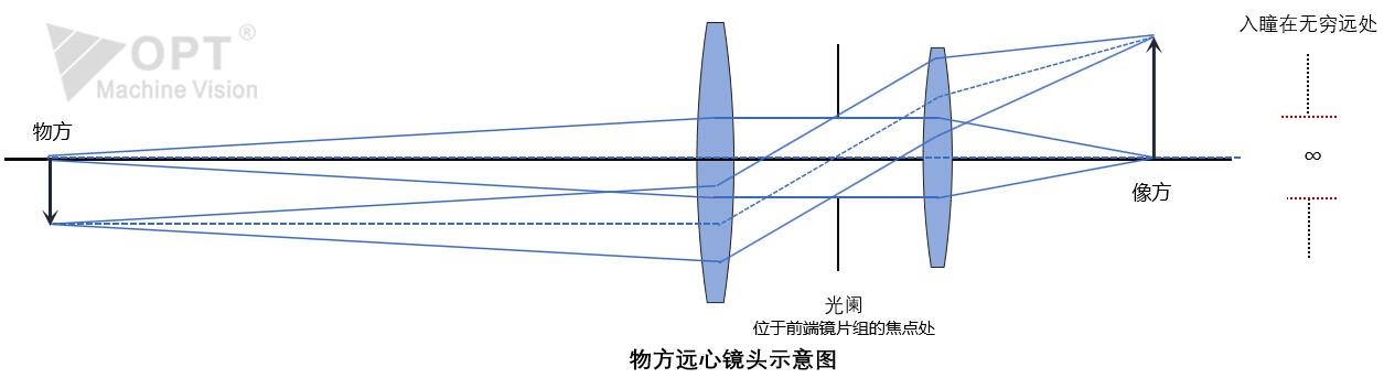 ◆物方远心镜头:入瞳位于无穷远处,使得物体到镜头的光线与主光轴平行。