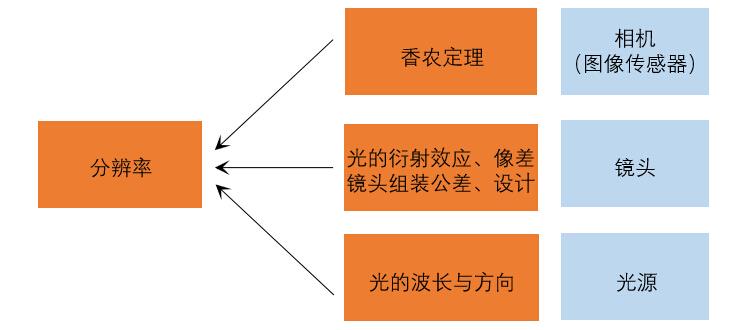 ◆为此,分辨率与镜头、相机、光源波长,以及光源与物料材质相互关系等因素影响。