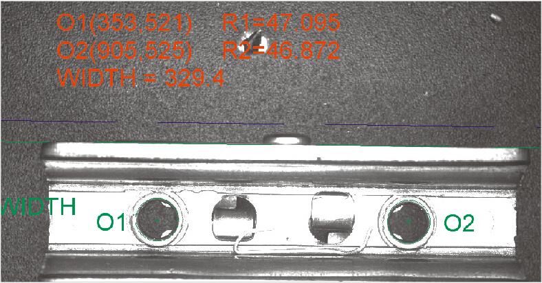 自動車用ワイパーの寸法、取付位置検査。ドーム照明を使用することで不均一な表面の反射ノイズを消します。輪郭抽出して、安定した検査を行ないます。