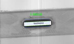 16kラインスキャンカメラとバックライト照明にハーフパイプ照明の組合せを採用。チップ部品を撮像し、ブロブ解析ツールにて汚れを検出。