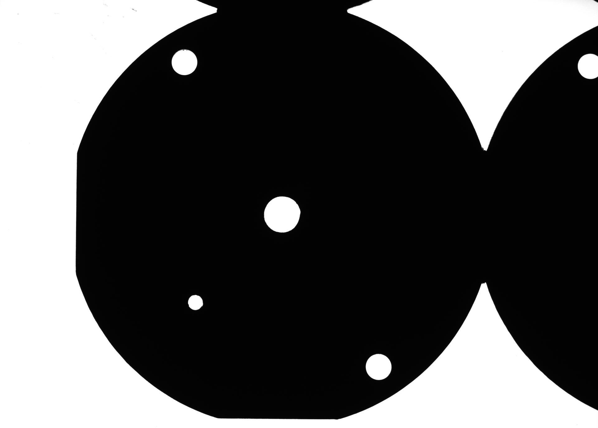 自動車用基板のスルーホールの位置決め。バックライト照明を用いることで、白黒の2領域にすることで簡単に検出が可能です。