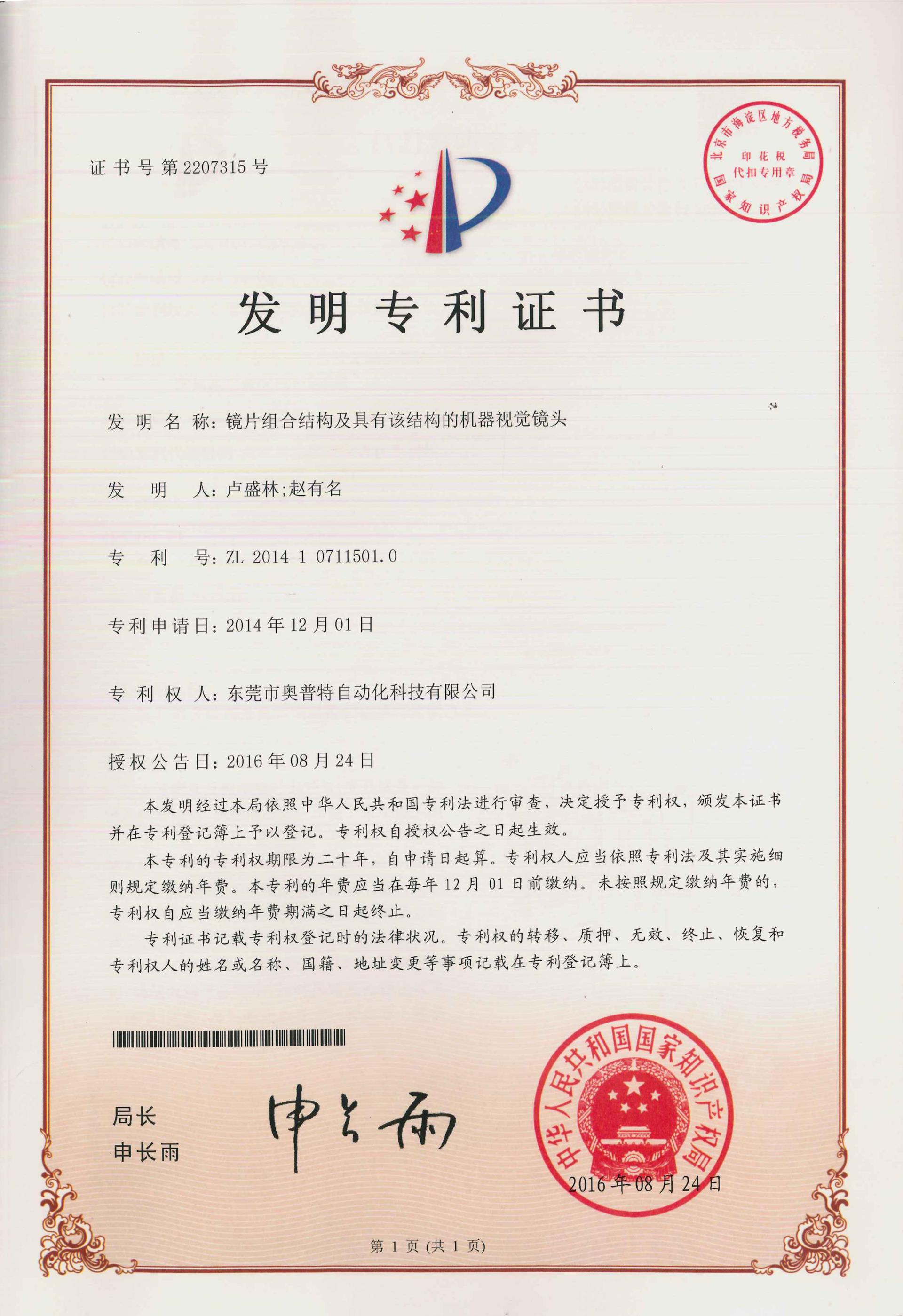 • 镜片组合结构及具有改结构的机器视觉镜头