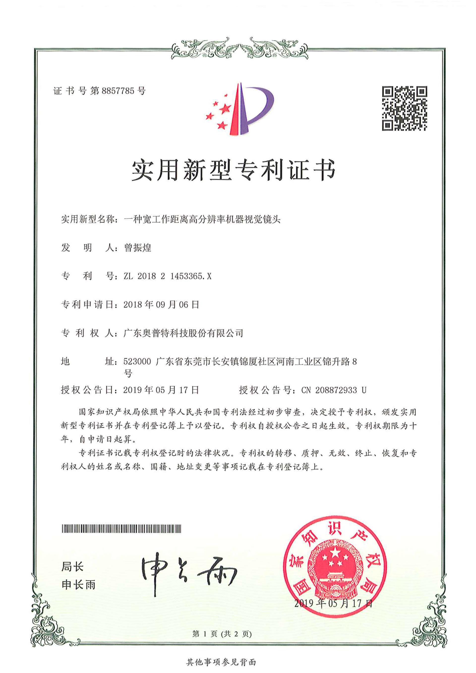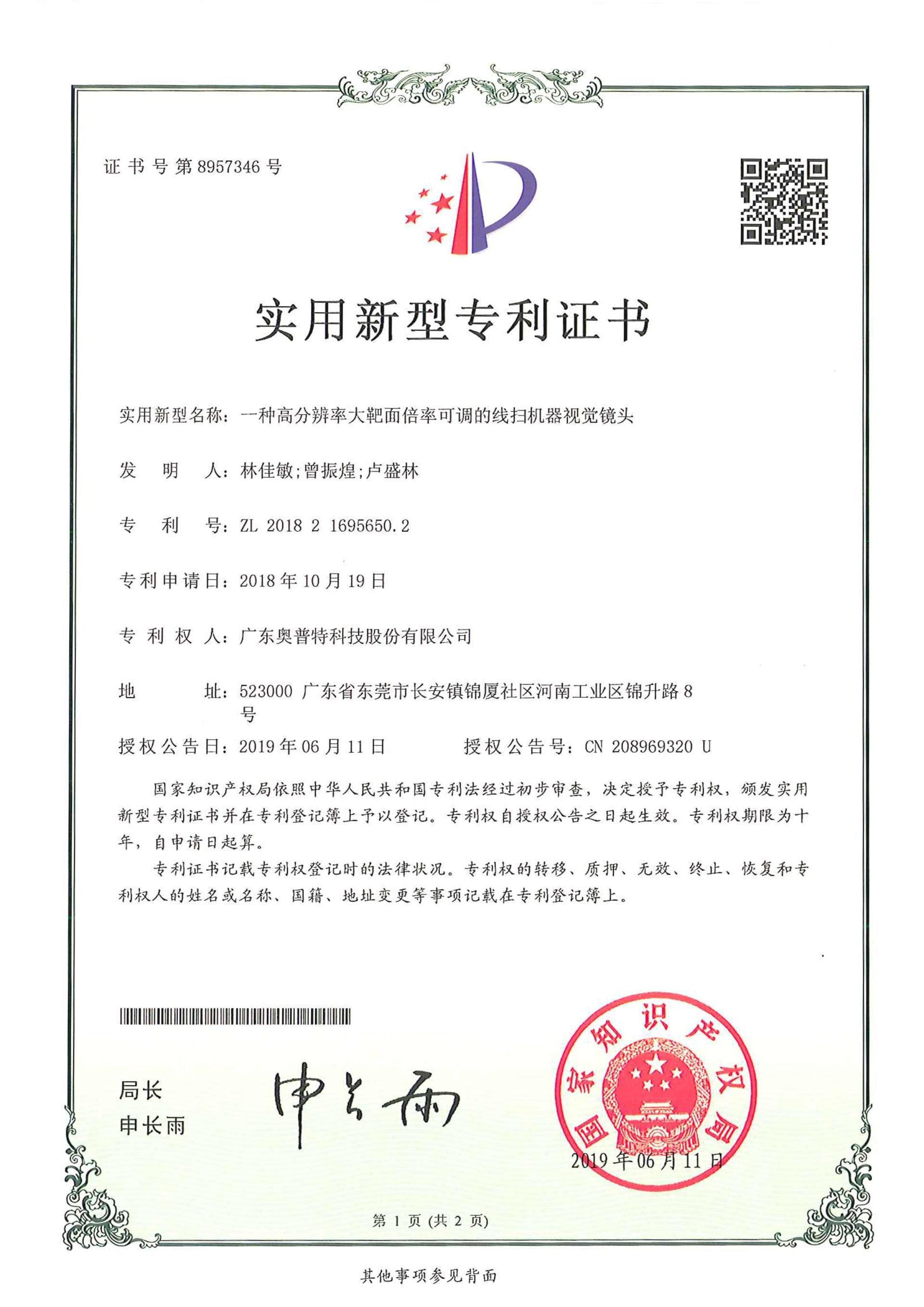 • 一种高分辨率大靶面倍率可调的线扫机器视觉镜头